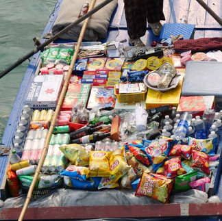 Wir gehen zurück zu unserem Balkon und gucken die schwimmenden Händler zu, wie sie versuchen ihre Ware loszuwerden.