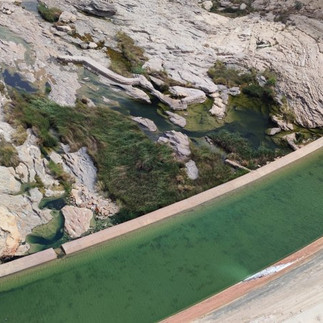 Dieser hat das ganze Jahr über Wasser, doch ist es in der trocken Zeit (also jetzt) hinter dem Damm und der Wadi direkt ist ausgetrocknet bzw. bekommt nur ganz wenig Wasser ab.