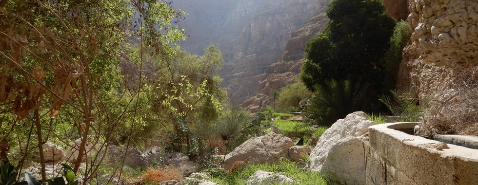 Man könnte diese Strecke zwar auch wandern, aber es wären 15 Kilometer und das zu 70 % nur Bergauf (bei 33 Grad). Darauf hatten wir natürlich keine Lust und genossen die wunderschöne Landschaft beim Eingang des Wadis. Die braucht sich ja auch nicht verstecken.