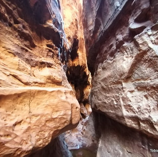 Wir laufen den Spalt lang und vor uns leider das erste Mal viele Menschen. Aber als der Weg immer schmaler wird und man über einen kleinen Bach, wo nur drei Steine als Weg sind, kehren alle um. So ist das schön und ich kann alleine weiter nach vorne laufen und den Canyon bewundern. Nach 150 Meter ist leider Schluss und ich kehre zurück.