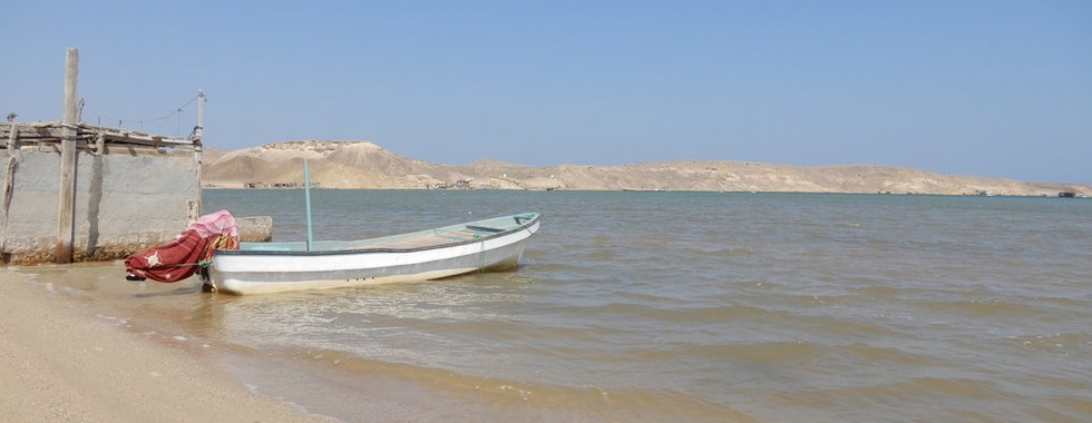 Vor uns sind die Berge, rechts neben uns eine trockene Wüste, wo vereinzelt Sträucher sich zeigen und links ist eine absolute Sandwüste mit diesen tollen Sanddünen, wo überall was grünes rauswächst und die Kamele und Ziegen auf einen warten. Hinter uns ist natürlich noch das wundervolle Meer mit dem genialen Sandstrand.